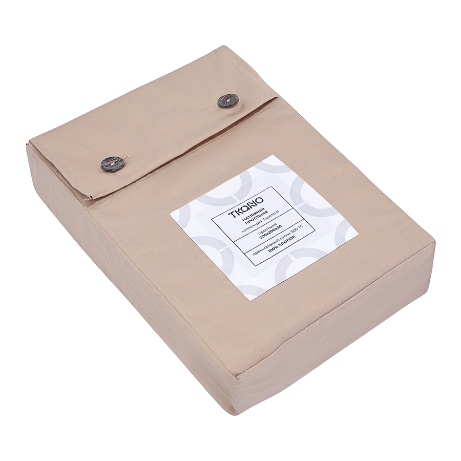 - Простыня на резинке из премиального сатина бежевого цвета из коллекции Essential, 200х200х30 см