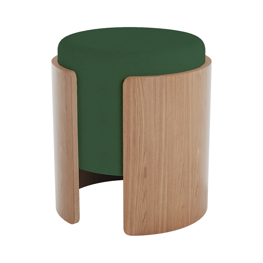 Материалы: фанера, шпон дуба, обивка Delux. Размер: диаметр 39х44 см. Цвет: серо-зеленый/орех.