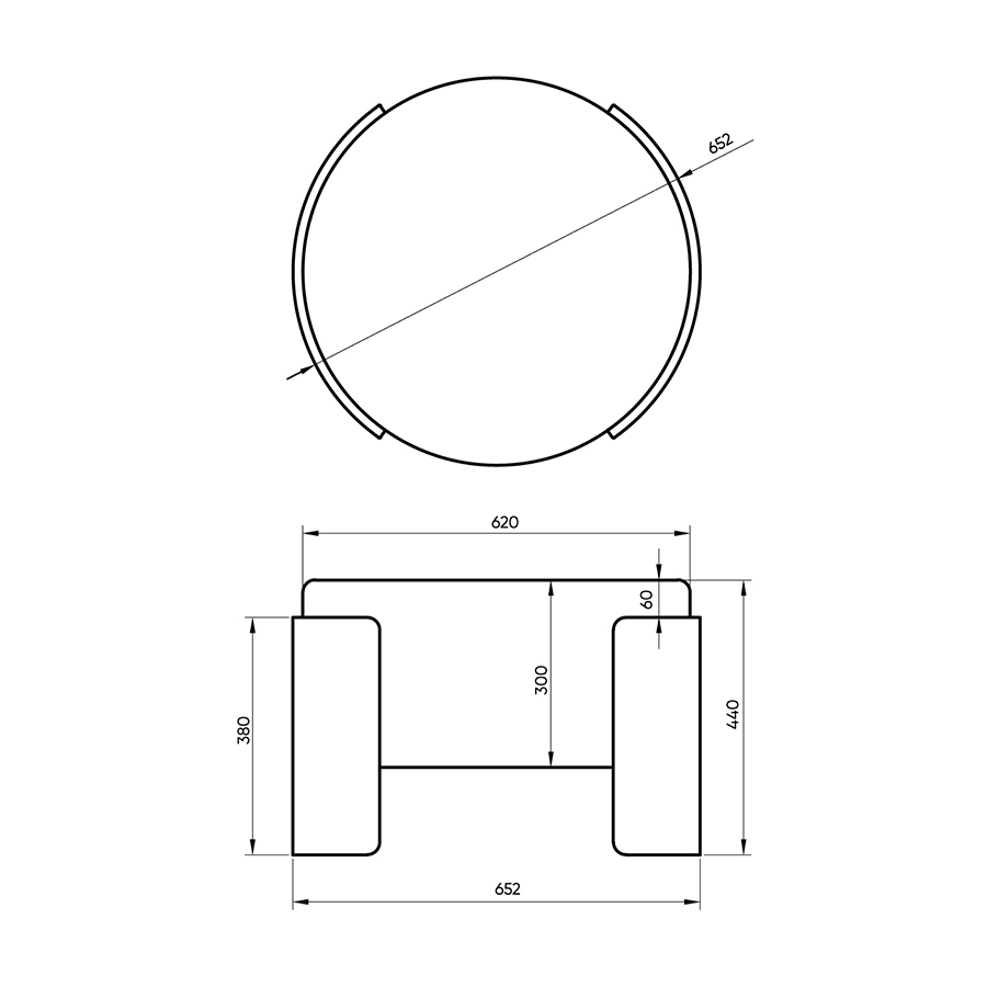 Материалы: фанера, шпон ореха, обивка твид. Размер: диаметр 65,2х44 см. Цвет: светло-серый.