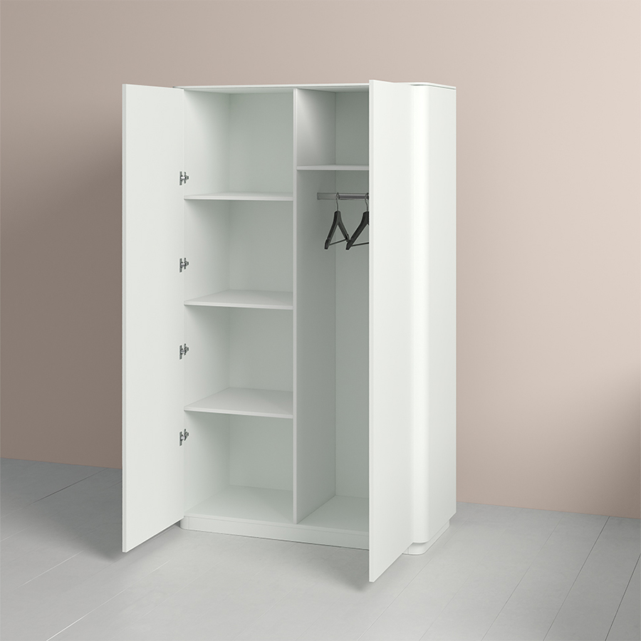 Двухстворчатый шкаф Tammi – практичное решение для организации хранения вещей. Он отличается лаконичным дизайном и продуманной конструкцией. Две створки обеспечивают удобный доступ к содержимому, позволяют рационально организовать хранение одежды, текстиля или других предметов. Одно из основных отделений оснащено штангой для одежды и полкой, другое – тремя полками. Компактные размеры при высокой вместимости делают шкаф удобным для спальни или прихожей.