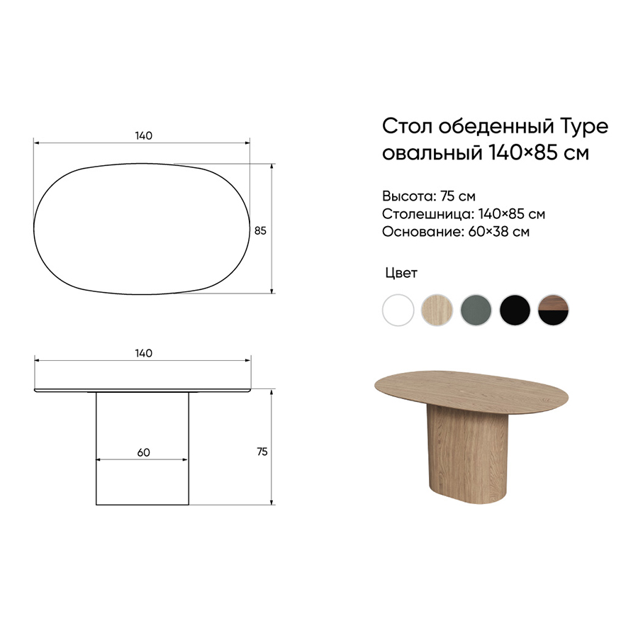 Овальный стол Type станет оригинальной деталью меблировки гостиной или столовой. Он отлично подойдет для семейных обедов, встреч с друзьями или уютных вечеров дома.
