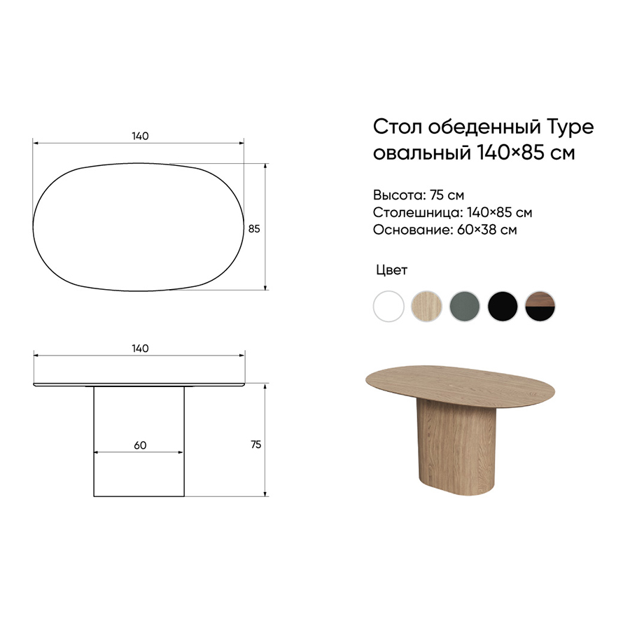 Овальный стол Type станет оригинальной деталью меблировки гостиной или столовой. Он отлично подойдет для семейных обедов, встреч с друзьями или уютных вечеров дома.