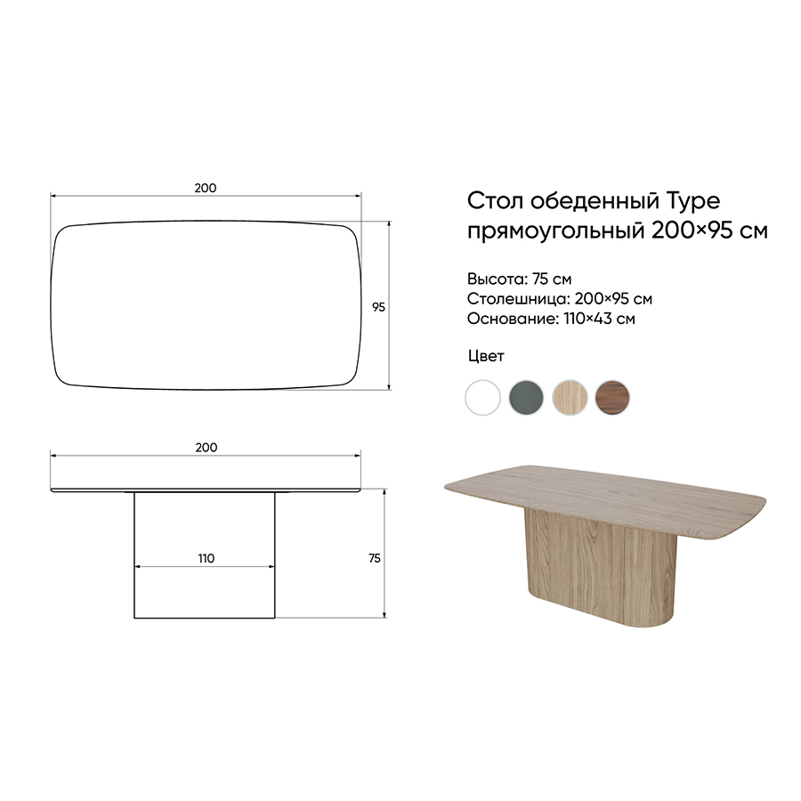 - Стол обеденный Type, 200х95 см, натуральный