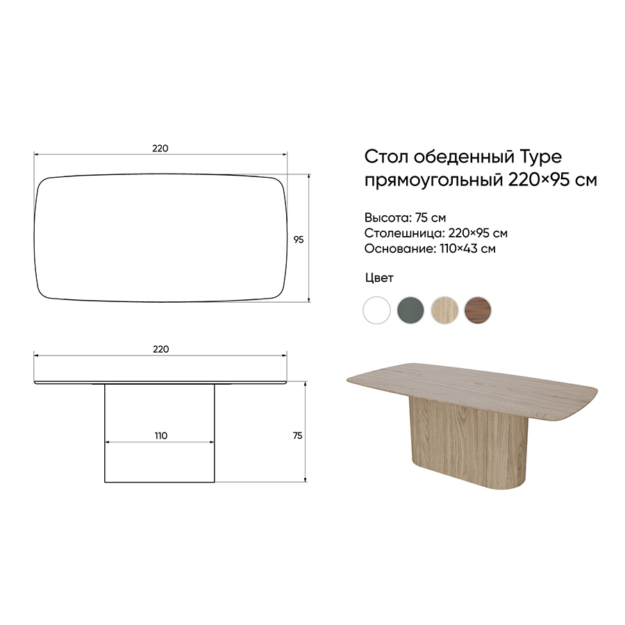 - Стол обеденный Type, 220х95 см, орех