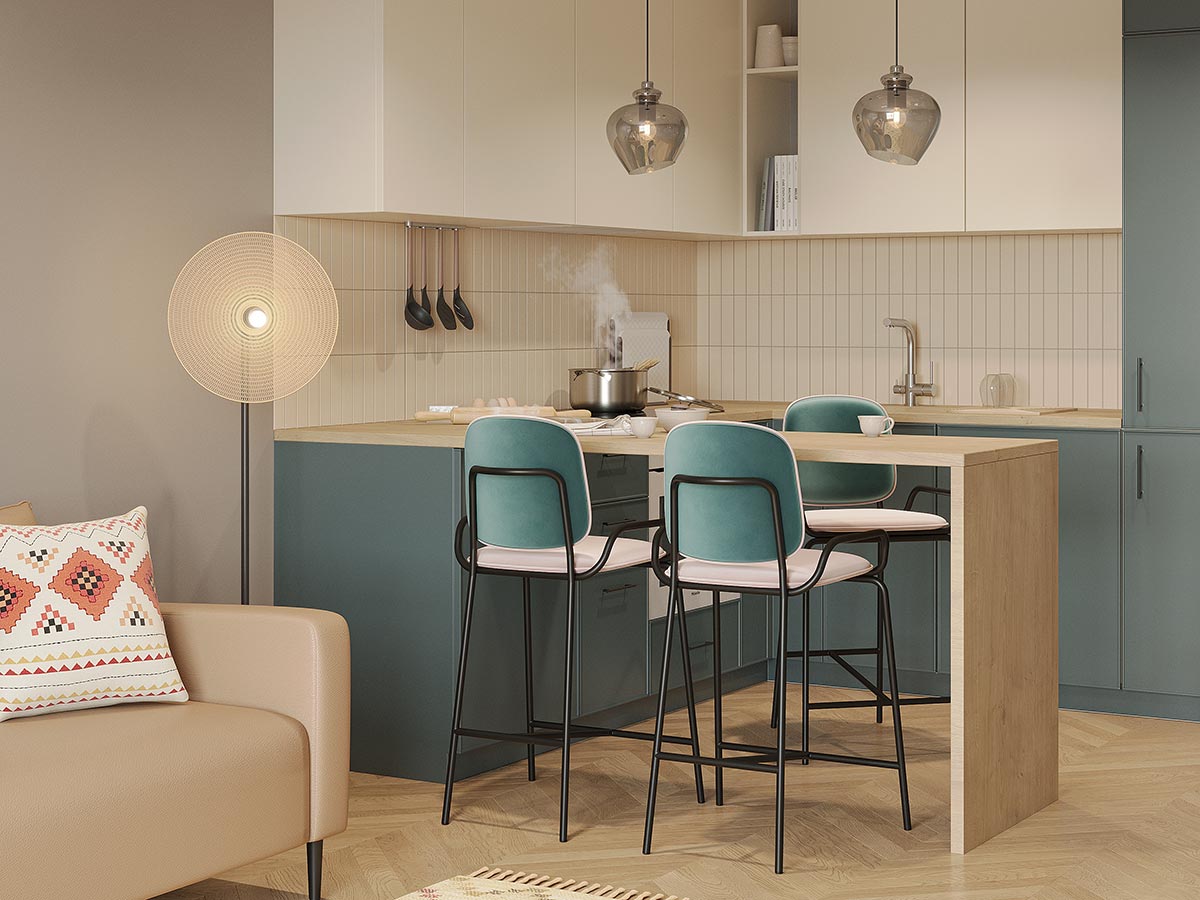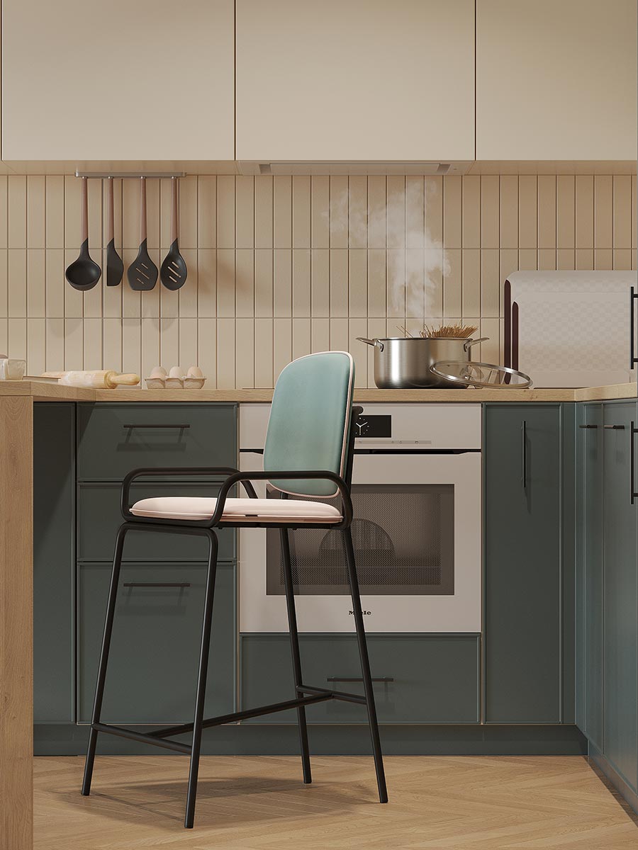 Стул полубарный Ror, 2 Frame, велюр, черный/зеленый/розовый