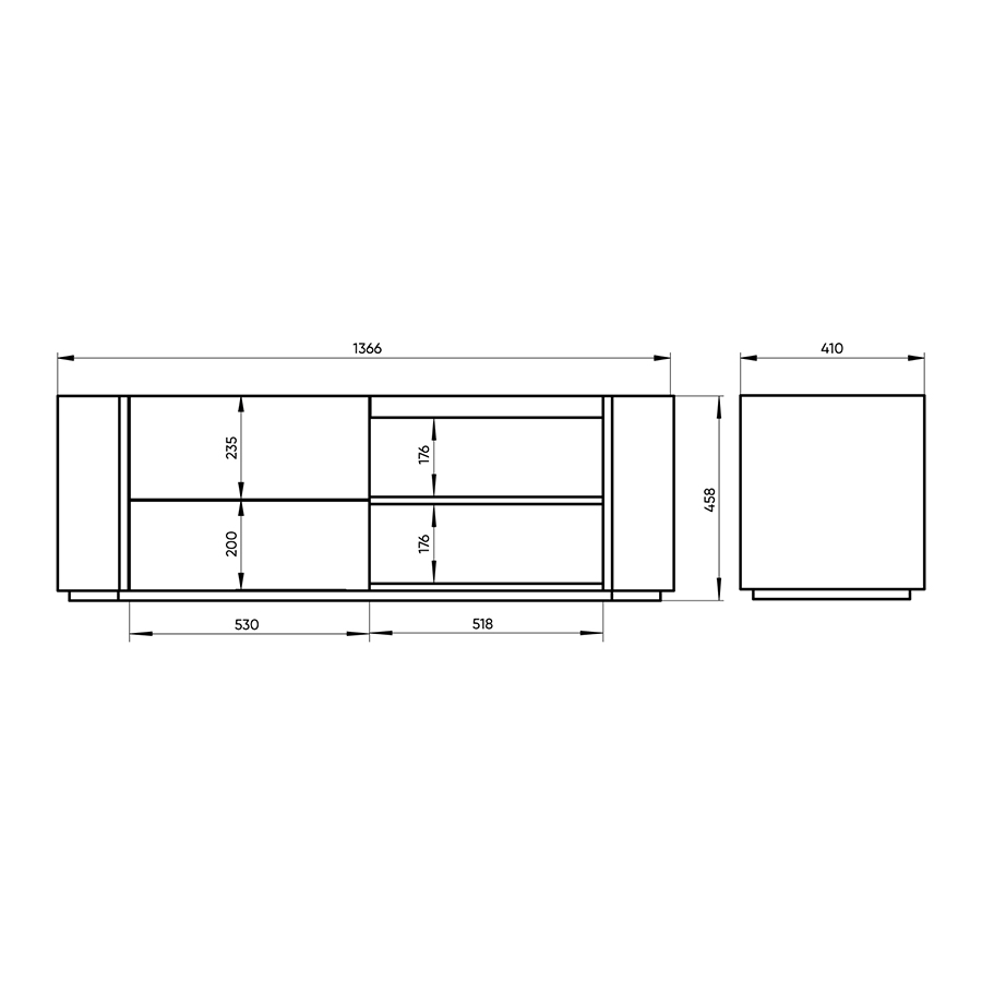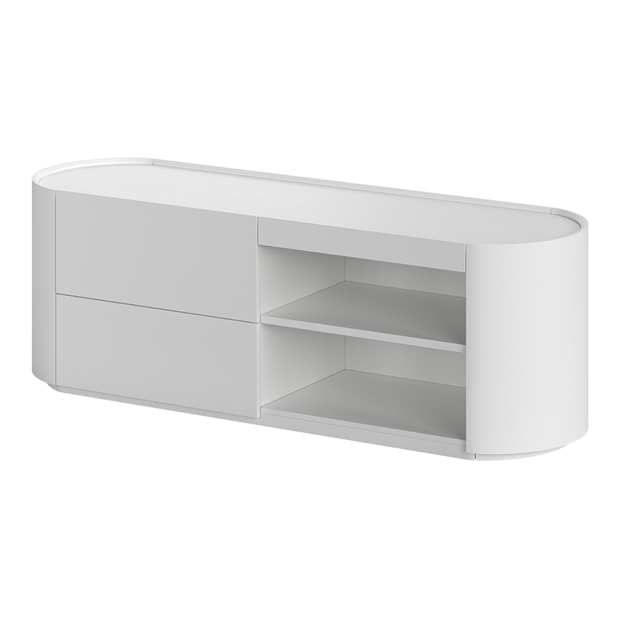 Тумба под ТВ Lagom – современное стильное решение для гостиной или спальни. Элегантный лаконичный дизайн и актуальный цвет позволяют органично включить ее в любой интерьер. Скругленный силуэт и открытые полки визуально облегчают конструкцию и гармонизируют пространство. Высокая вместимость при компактных габаритах делает тумбу практичным элементом системы хранения. На верхней панели и открытых полках достаточно места для размещения техники, сопутствующих аксессуаров или декора.