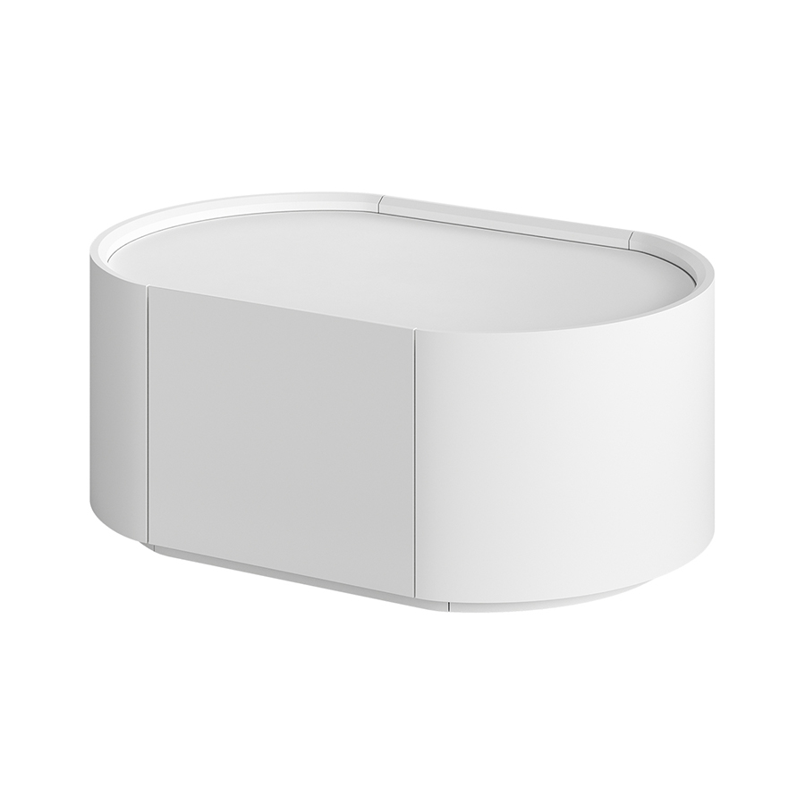 Прикроватная тумба Lagom – оригинальное и практичное решение для спальни. Элегантный лаконичный дизайн и актуальный цвет позволяют органично включить ее в любой интерьер. Скругленный силуэт визуально облегчает конструкцию и гармонизирует пространство. На верхней панели достаточно места для размещения настольной лампы, телефона и других необходимых вещей или декора.