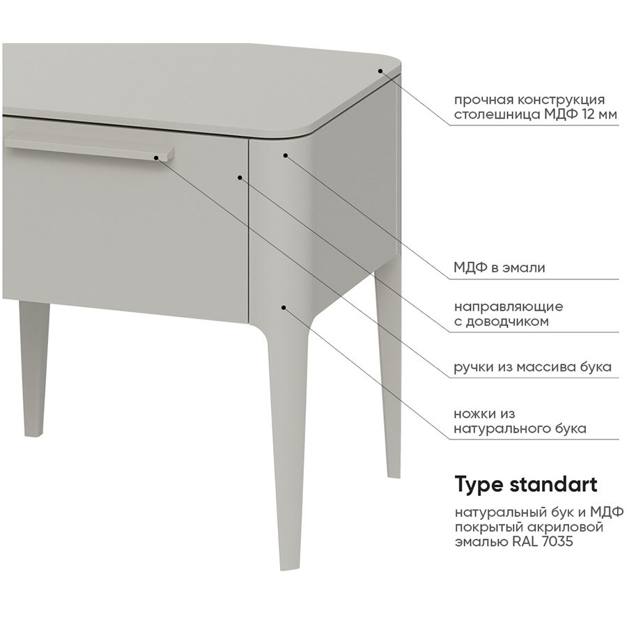 Тумба прикроватная с 2-мя ящиками Type, 45х60х50 см, серо-бежевая