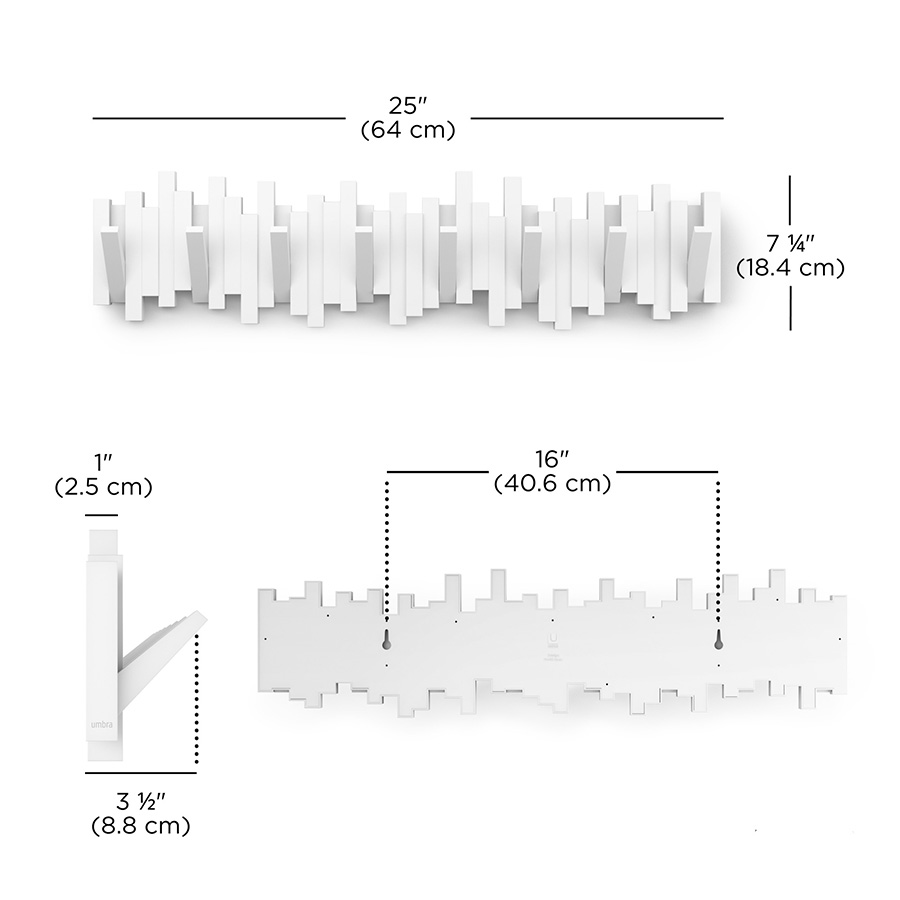 Вешалка настенная Sticks, 72 см, 8 крючков, белая