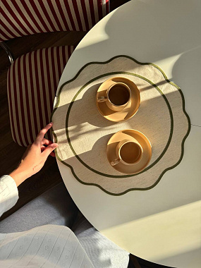 Салфетка под приборы Anemone из коллекции Trendy Ruffles, Ø38 см, оливковый