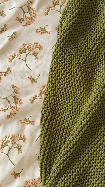 Плед из хлопка жемчужной вязки оливкового цвета из коллекции Essential, 130х180 см
