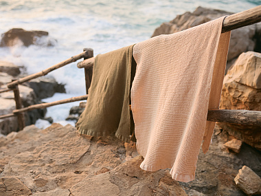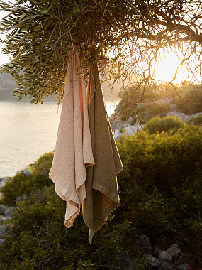 Полотенце банное из умягченной вафли цвета хаки из коллекции Essential, 70x140 см