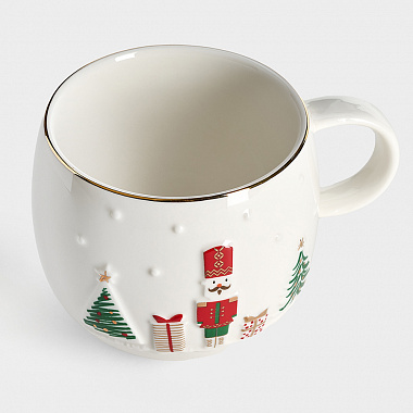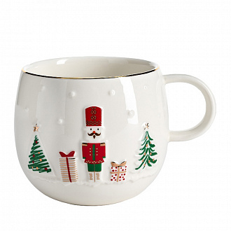 Кружка Новогодний снег, Щелкунчик, 400 мл, белая/золото