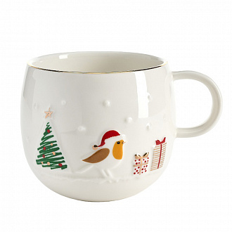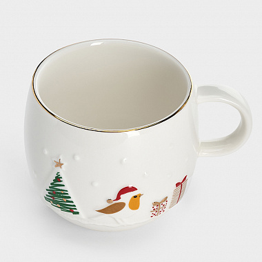 Кружка Новогодний снег, Птичка, 400 мл, белая/золото