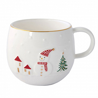 Кружка Новогодний снег, Снеговик, 400 мл, белая/золото