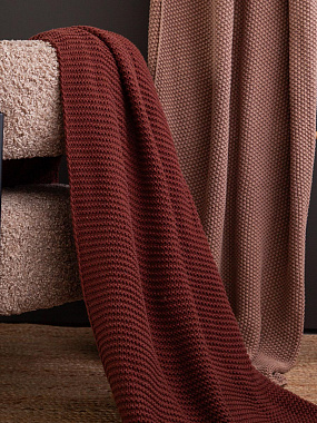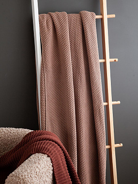 Плед из хлопка жемчужной вязки коричневого цвета из коллекции Essential, 130x180 см