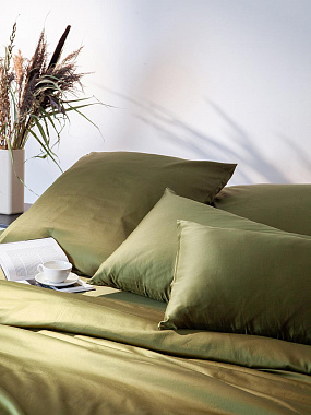 Комплект постельного белья из премиального сатина оливкового цвета из коллекции Essential, 150х200 с