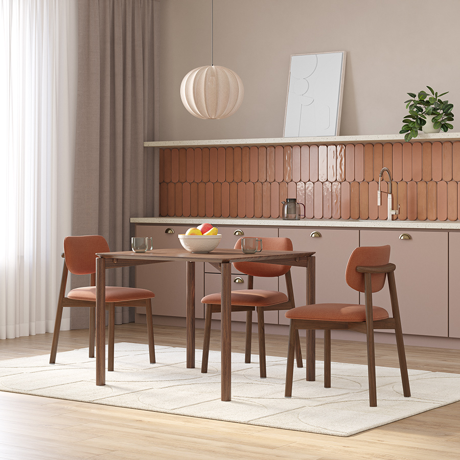 Обеденная группа Union: стол обеденный 90х90 см, дуб и 4 стула, рогожка, темно-коричневый/терракота