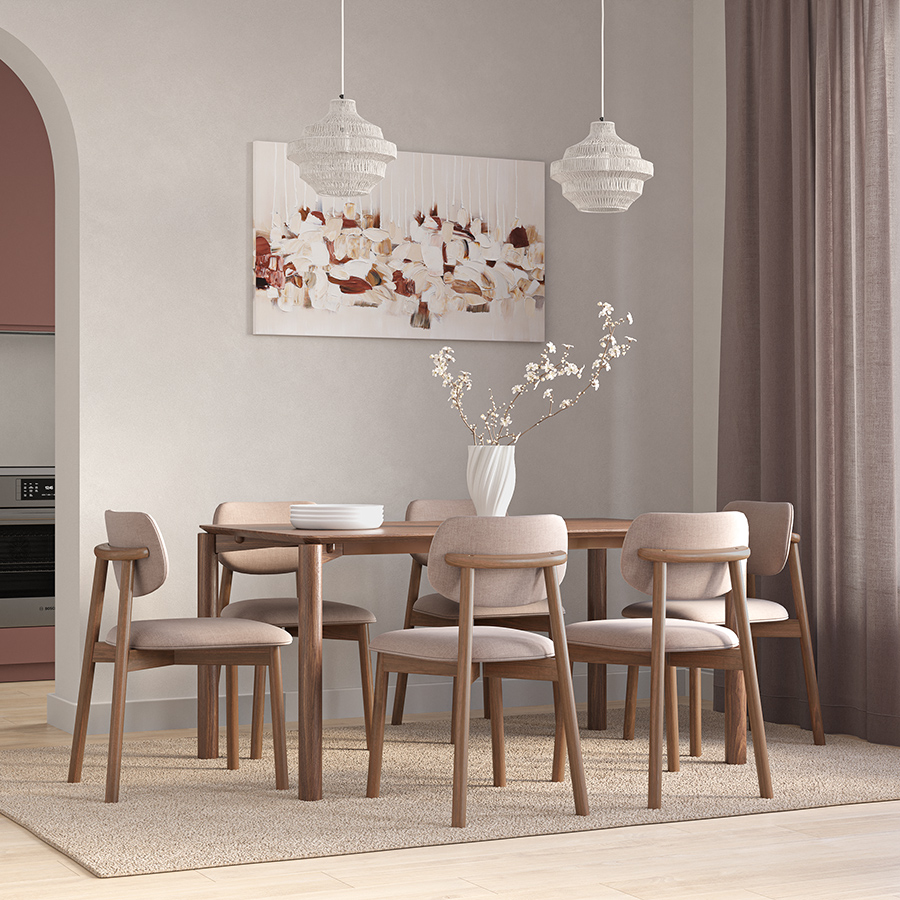 Обеденная группа Union: стол обеденный, 150х90 см, дуб и 6 стульев, рогожка, светло-коричневый/розовый