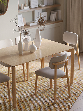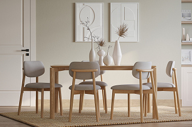 Обеденная группа Brunch: стол обеденный,180х90 см, дуб и 4 стула, рогожка, светло-коричневый/серый